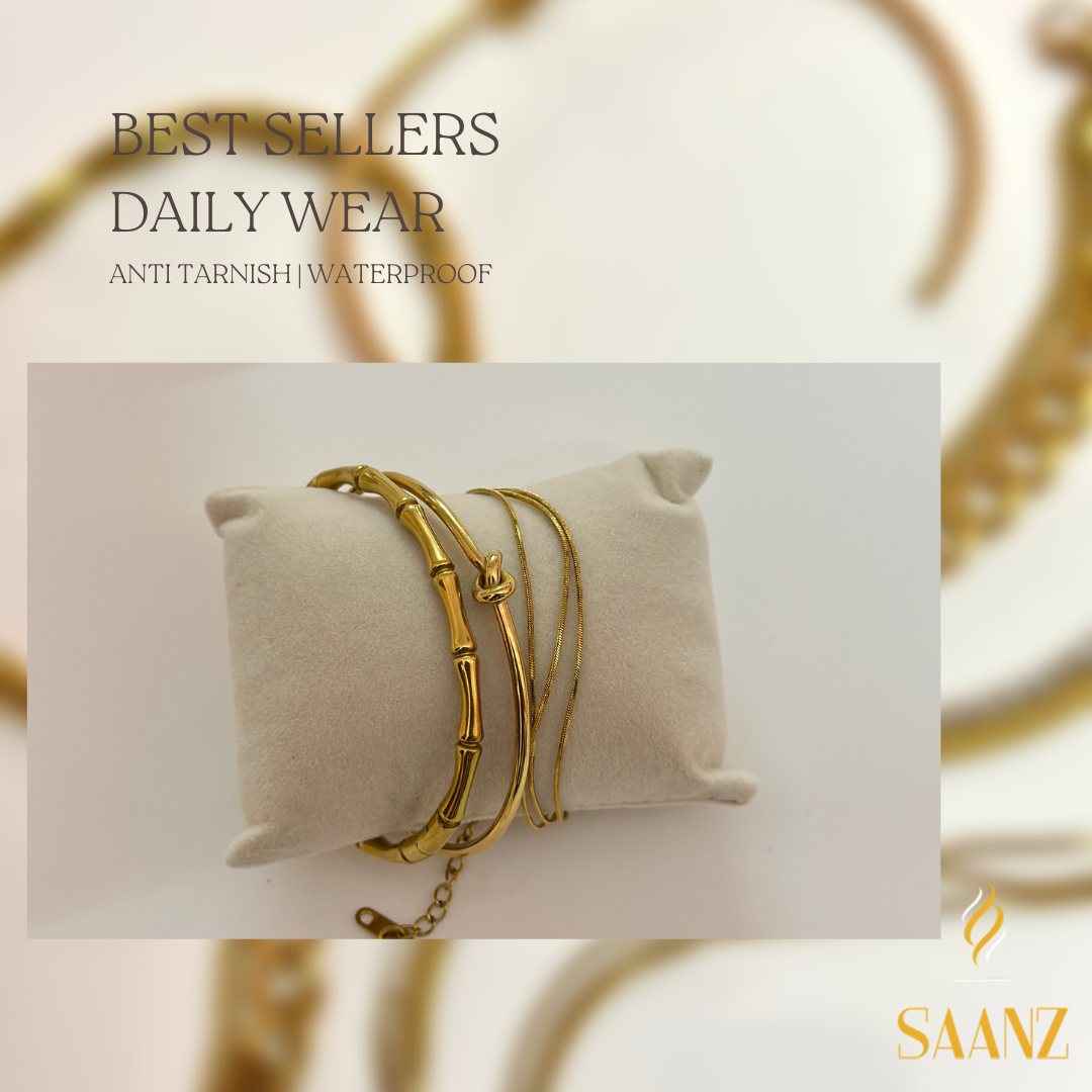 SAANZ is a premium jewellery brand that offers a wide range of anti tarnish , gold plated , stainless steel jewellery for men and women. Our collection is made from high-quality materials.