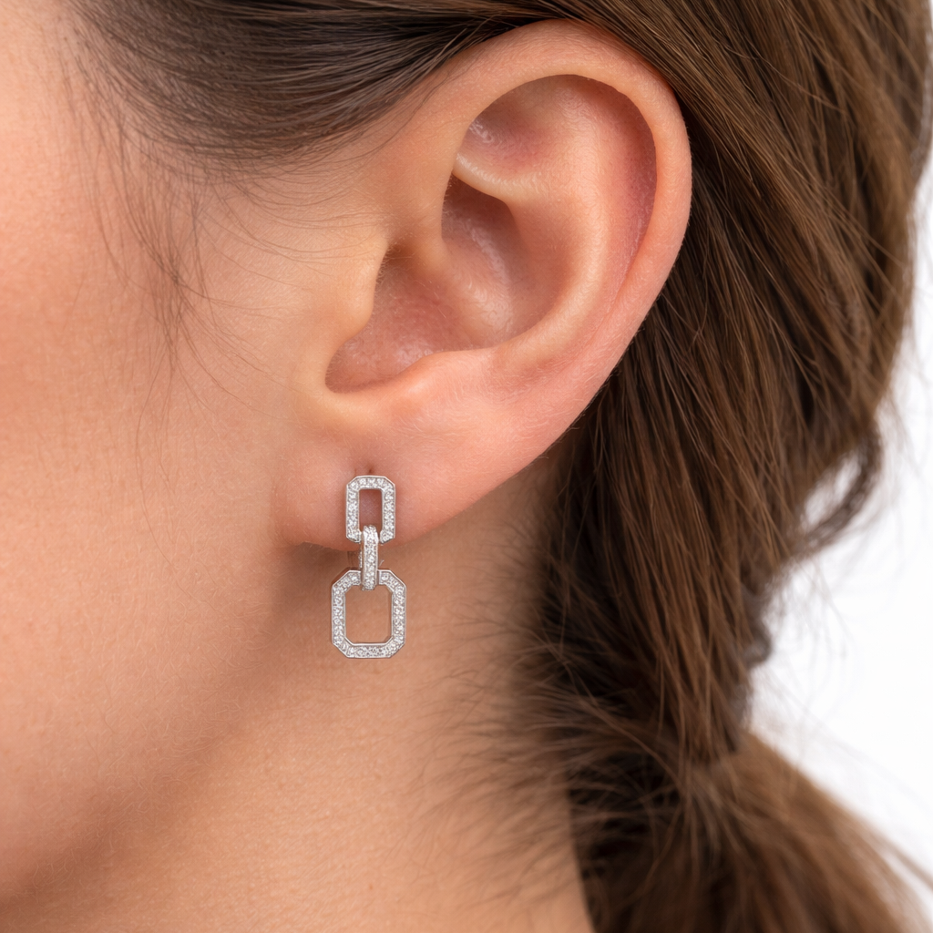 DIAMOND DANGLING SILVER STUDS