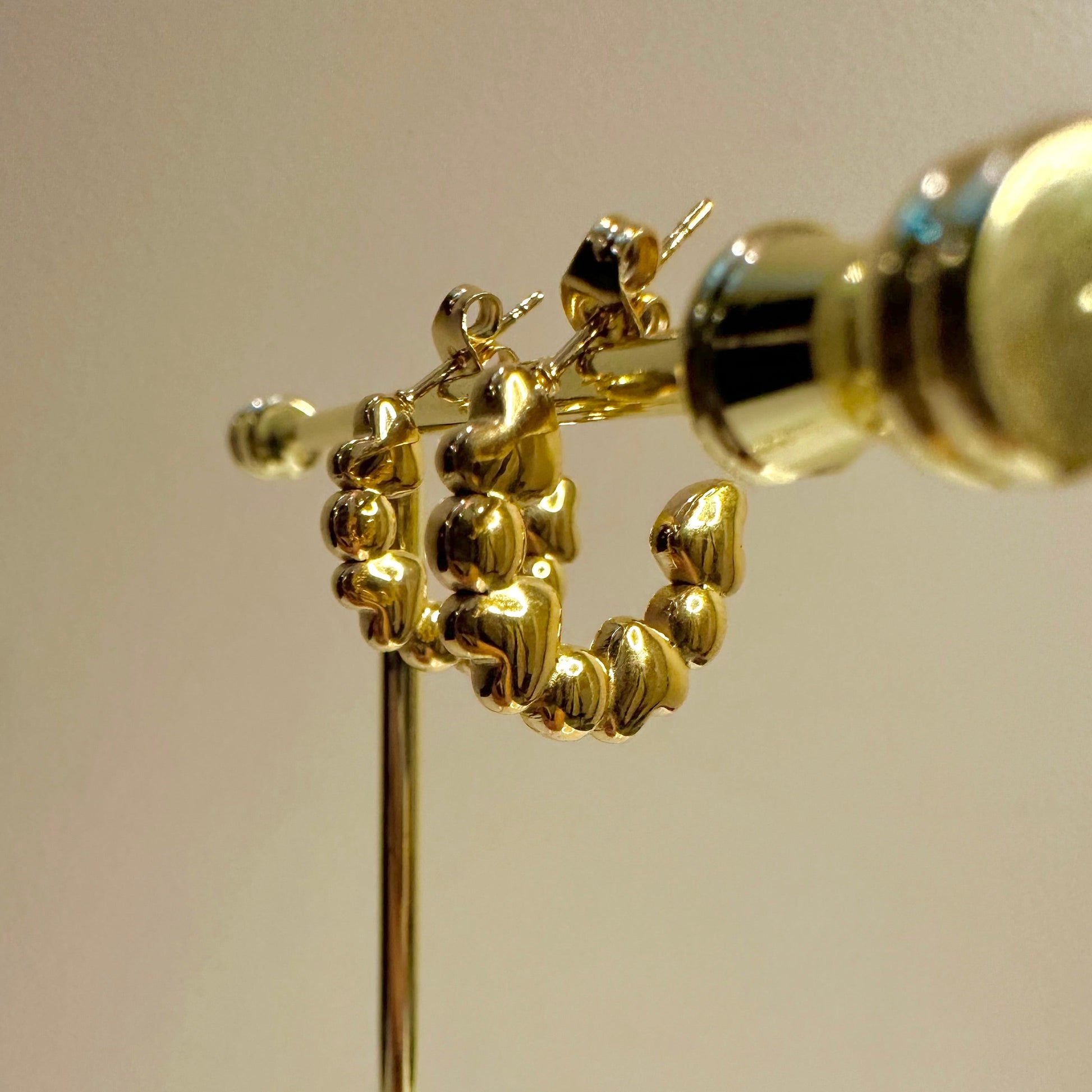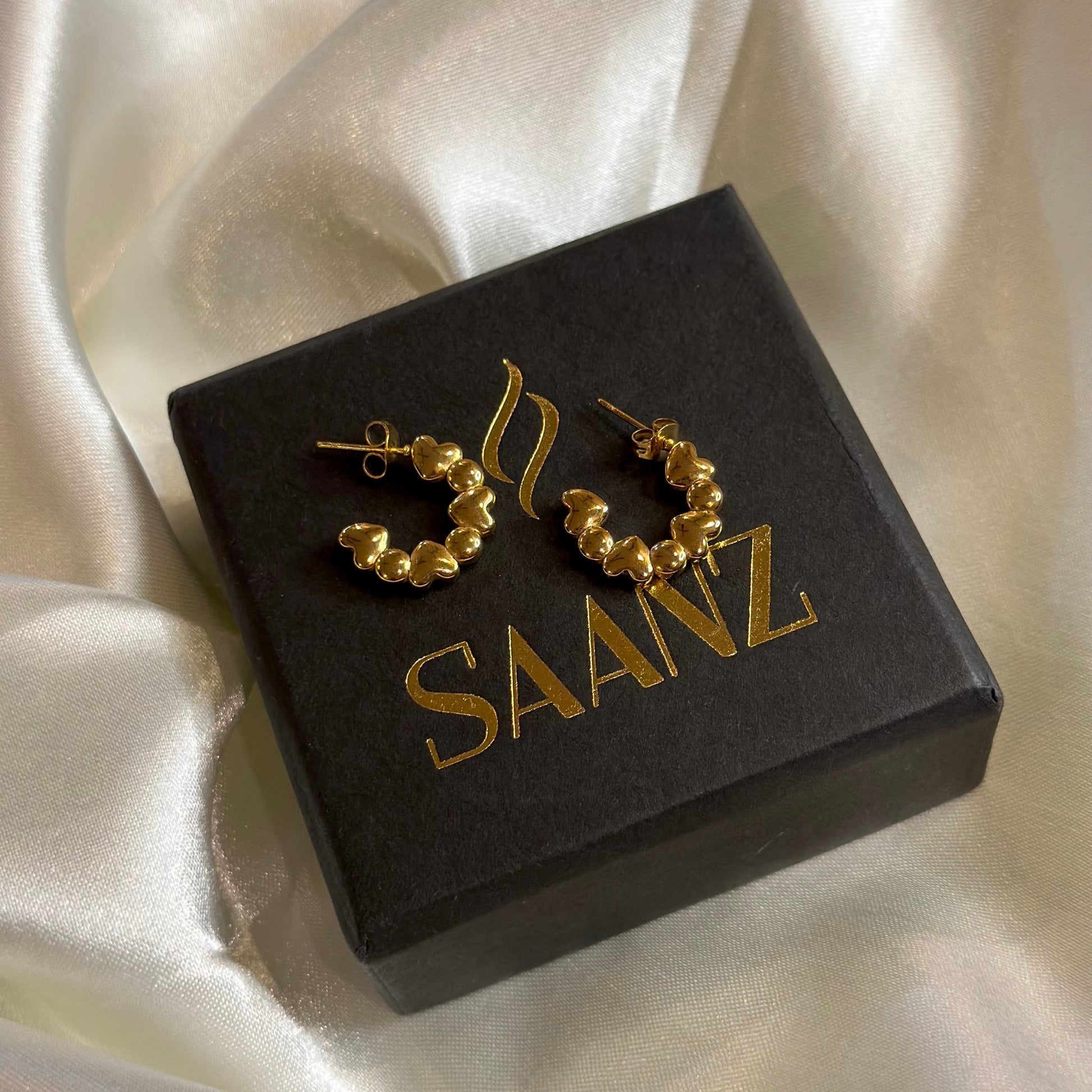 GOLD HEARTY HALF HOOP STUD EARRINGS